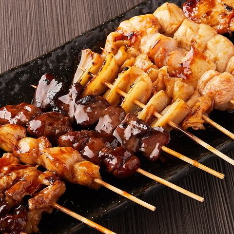 用木炭烤制的日式烤鸡串外酥里嫩。在柏市可以品尝到的经典烤串。